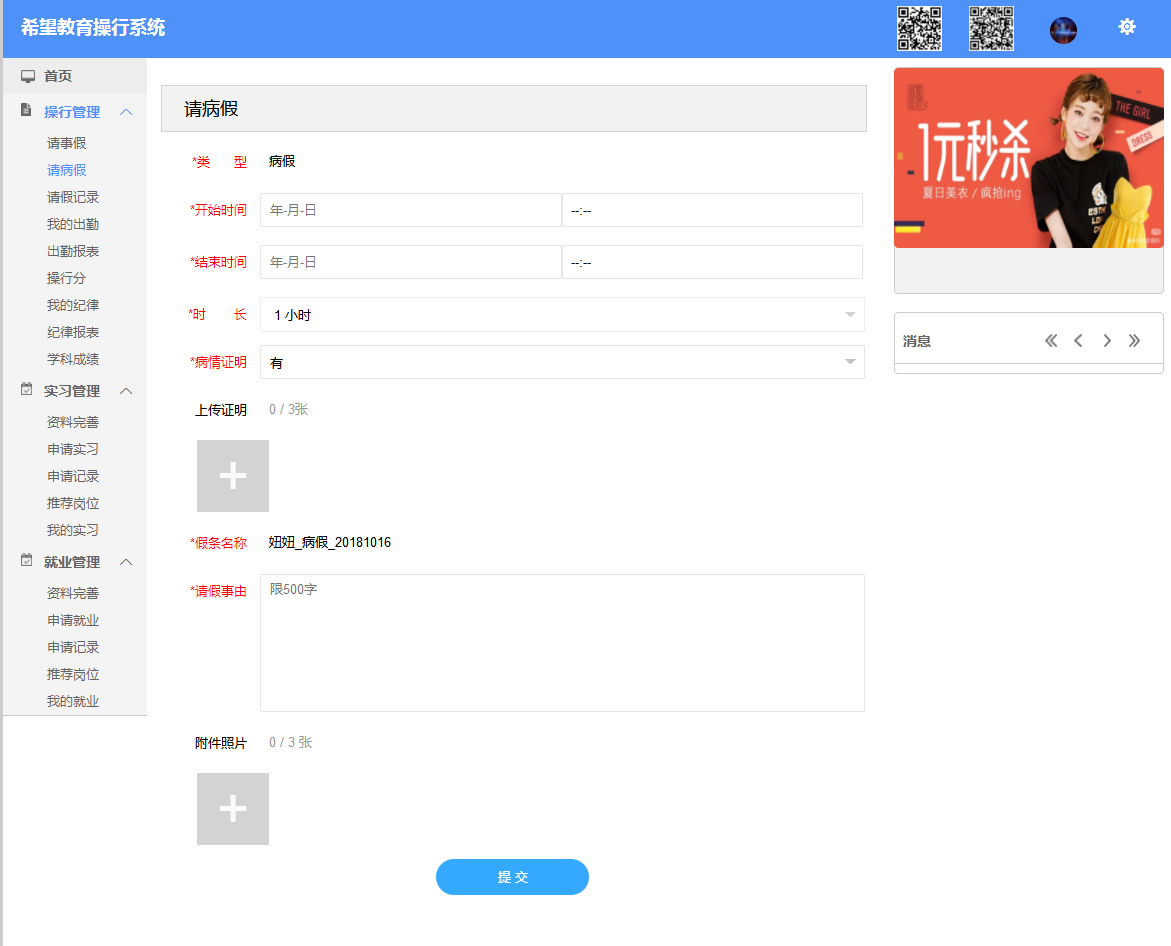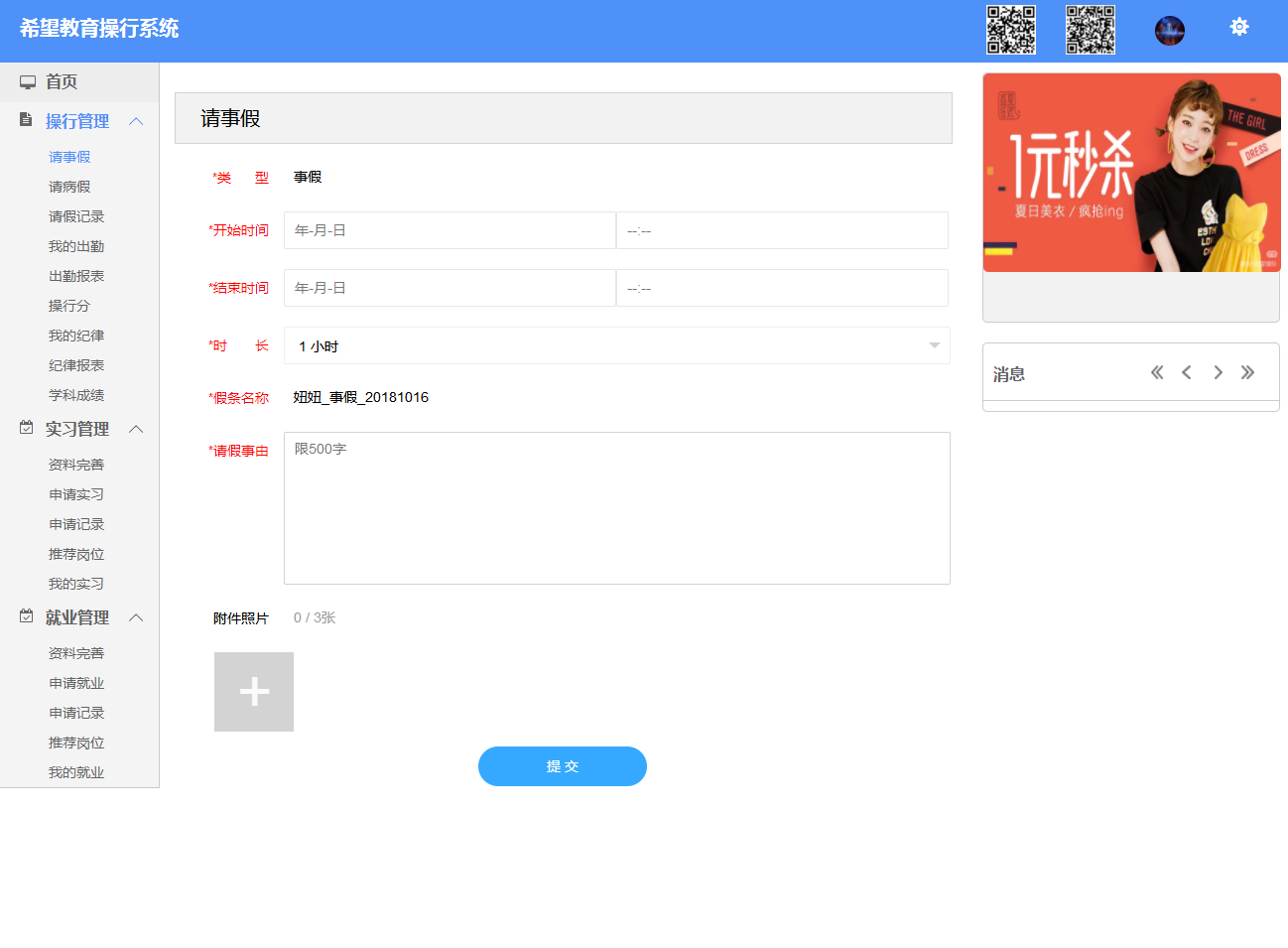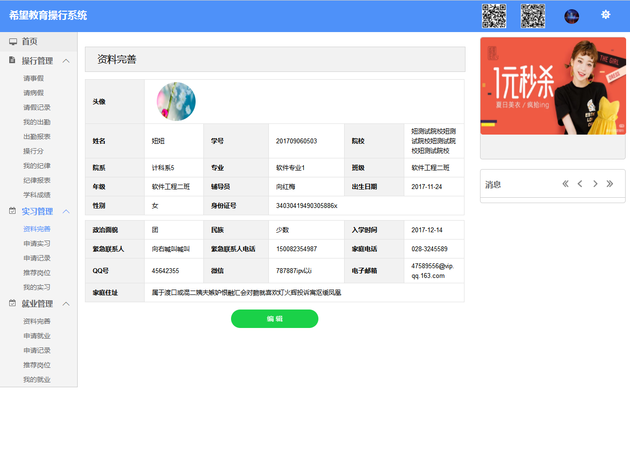 希望教育集团定制的校系,班级,学生,课程,考试等管理系统